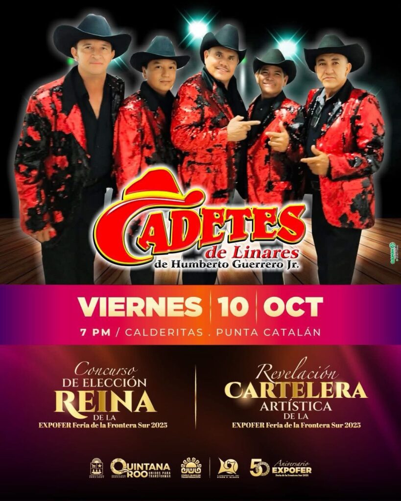 Este viernes 10 de octubre en punto de las 7 de la noche en Punta Catalán, en la bella comunidad de Calderitas, se tendrá el concurso para elegir a la Reina de la Feria y la presentación musical de Los Cadetes de Linares de Humberto Guerrero Jr.